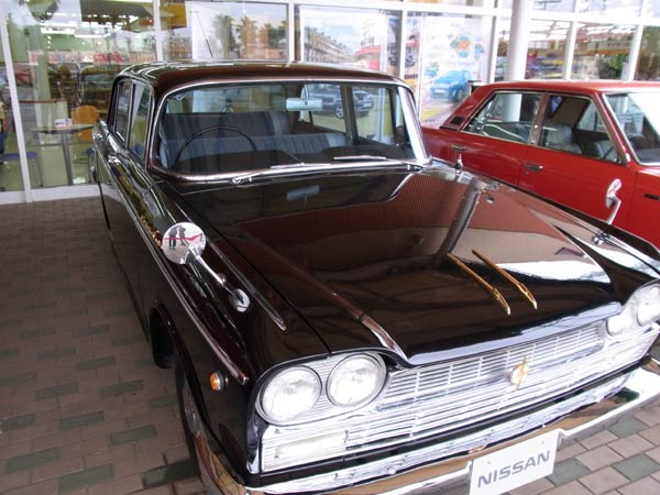 カレスト座間という、NIS○ANの新車/中古車を扱ってるディーラーと、カー用品を扱ってる店舗とが合体している総合(?)ショップに、古の車が展示してあるって言うんで、見て来ました。