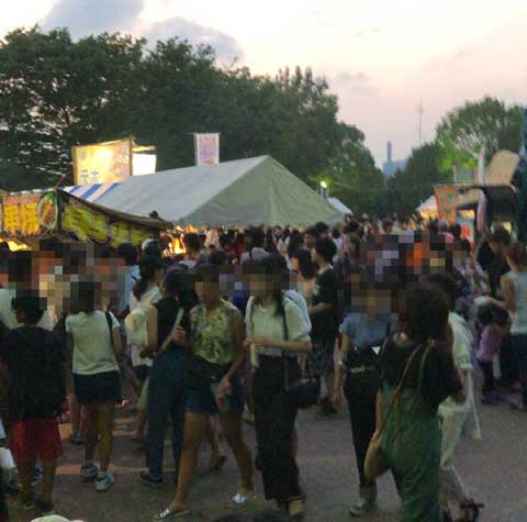 花火は河川敷で行われますが、そこは人が多すぎて色々な意味で危険なので近づく気になりません。なのでここ数年は各種催し物が開催される会場(公園です)にて見る事にしています。当然、飲み食いのための屋台はこれでもかと言うほど出ているので選り取り見取り頂けます。