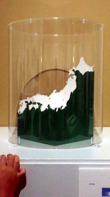 この位置から見ると日本地図になるんですが、真上からみると中が空洞の四角形(4面)。当然、他の視点からみても何がなにやら判りません。
