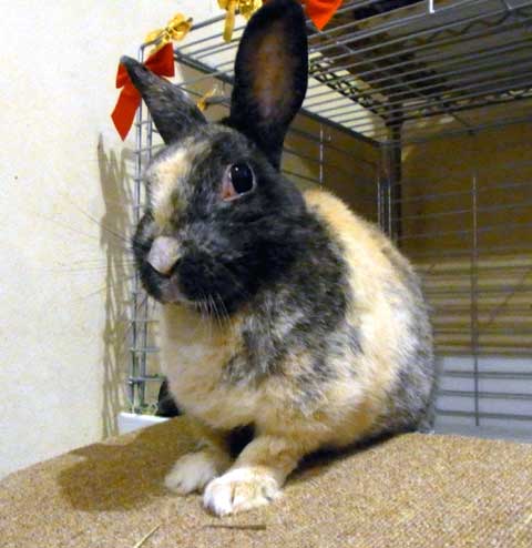 確かハリネズミを診せに行っていた時だったと思いますが、帰り際に「里親募集中なんだけど、このウサギどう?」と紹介されたのがキッカケでした。最初に飼っていたウサギが☆になった後、ショックで(奥様は)ウサギを飼おうとはナカナカ思えなかったようで、最初は「飼うのはチョット・・・」と引き気味でした。そして通院最期の時にやっと飼うことに決めた子でした。