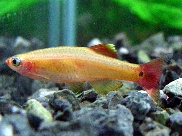 ←これも一緒に飼ってます。改良品種で「ゴールデンアカヒレ」と言います。