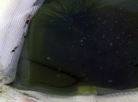 判ります?矢印の先に居るの・・・(もう1匹いて、2匹このネットに入ってます)