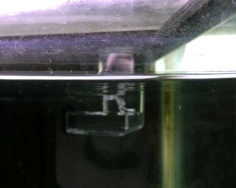 上部フィルタの排水口にエルボが付いてるんですが、その中に入って嵌まってしまっていたんです。こんな事ある??と驚きましたが実際起きてしまったんですから仕方有りません。。。残り1匹が同じ目に遭わないように、エルボを改造して対策しました。
