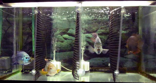 4匹を仕切って入れてる、90cm水槽での出来事です。同じように仕切り板を設置しているリビングの水槽で、セパレーターを外した事による影響が余り無いように見えたので(後に問題発生)、コケが生えまくっていた90cm水槽のセパレータを取っ払った(捨てた)んですね。そしたらですよ!!、途端に口を咥えあう喧嘩が始まって止まらないじゃありませんか!!!!! あっという間に魚はボロボロになっていくし、良いことが何もないので、急遽捨てたセパレータを設置し直しました。