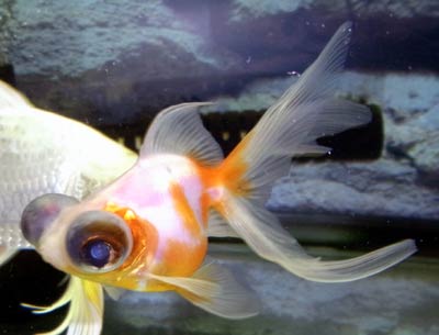 こいつも小さいんですよ。ランチュウよりも小さいかな。鱗が透明と言う事で、エラや目玉がウッスラと透けて見えるんですよ(爆)。
