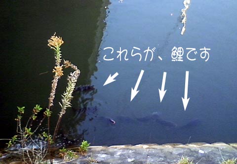とか感心しつつ良く見ると、更に驚く事に鯉が結構いるじゃありませんか。しかもサイズも大きいのが。