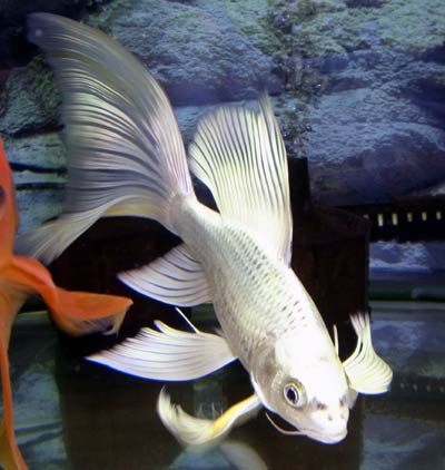 前回のコメット同様、各鰭が長いのが特徴。ウチのは、小さい頃はもう少し黒みがかった処もあったんだけど、今は銀一色という感じです。