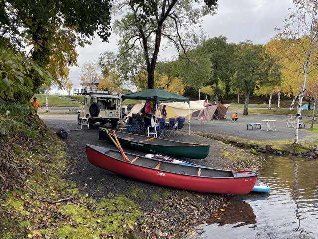 テキパキとテントを張ったりカヌーを車から降ろしたりして準備を進めました。