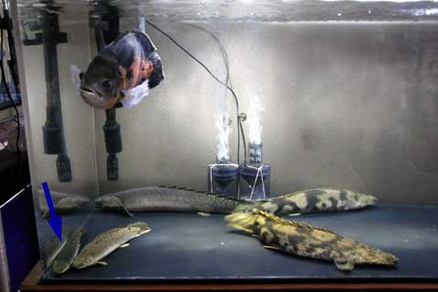 コヤツは常日頃モーターの下に隠れっぱなしで、その全体像が中々確認出来ません。水槽の掃除の時などは逃げ回るために出てきますが、それ以外だと暗くなってから(電気を消してから)しか姿を現しません。