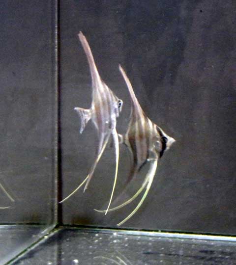 エンゼルは、①アルタム,②デュメリリィ,③レオポルディ,④スカラレ、の4原種からなります。一般的に流通しているエンゼルはスカラレで、改良品種の元になっていることもあり、ショップで見かけるエンゼルの殆どがこのスカラレ(又は其れがベースの改良品種)だと言っても過言ではありません。で、①~③はレアな部類になる訳ですが、中でもレオポルディというのは、私も実際見た事が無く、珍種に近い感じです。デュメリリィは何度か見た事がありますね。で、私が今回飼う事にしたアルタムはというと、エンゼルの中で頂点に位置づけられている種類です。何が?と言えば、大きさ(縦×横)・各ヒレの長さ・飼育難易度(中でも繁殖)がMax.なんだそうで・・・(笑)