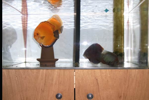 今回の移動の結果は(昨日移動したばかりですが)良好で、ケンカのケの字もありません。ディスカスの方がセベラムを避けてる感じですかね。双方、より一層大きくなってくれる事を願います。