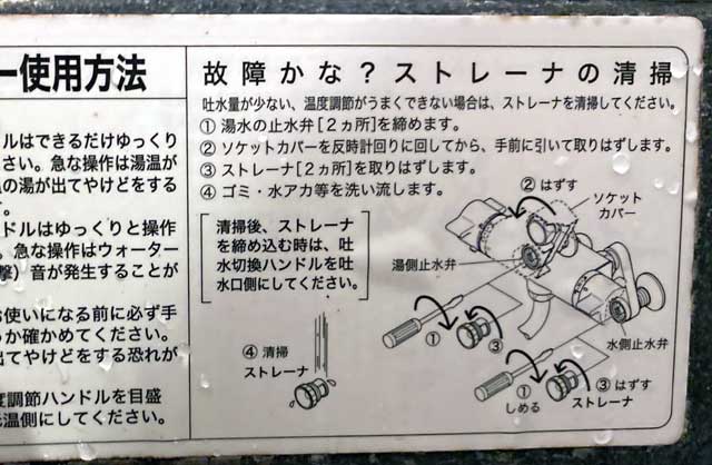 尚、ウチの風呂場の場合、混合栓の横に簡単な説明書が貼ってあって、そこには混合栓の配管部分にあるネジで水を強制的に止められることが記載されていました。しかし・・・項目も違うし、そんな事には普通気付かないんでしょうね。