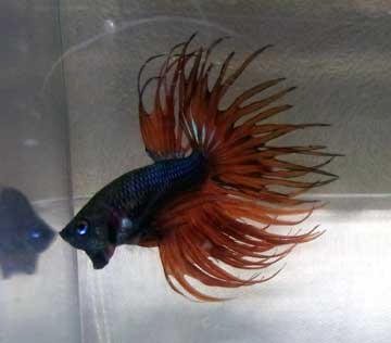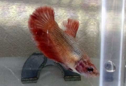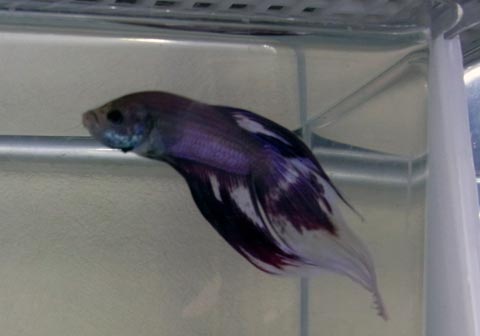 購入のきっかけは、先週お迎えしたクラウンテール。此奴、結構な量の泡を作っていましたので、試しに♀でも買ってくるか?ということでショップに行きました。残念ながらクラウンの♀はいませんでしたが、お安いベタの中でキレイな色の♂と、元気良さげなスーパーデルタの♀が目に留まったので(爆)買う事にしました。