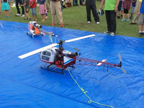 で、飲み食いしながらラジコンを見に行ったところ・・・。最近話題のドローン(お値段お高めのプロ仕様が主)が何機かと、コレは珍しい??、ジェットヘリのラジがあったのです。ここの方々、ジェットヘリを飛ばすつもりで持ってきたらしいのですが、当局から騒音問題が起きるから飛ばしちゃ駄目!と、きつーくご指導受けたとの事でとても残念がってました(笑) それでも、エンジン掛けるだけならOKが出たとかで、2機とも火を入れてデモしてくれました。