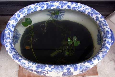 水蓮は生き延びてくれていたので此方もそのまま。でも花が咲くかどうかは「?」ですね。中のメダカは2鉢合わせての越冬した強者です。