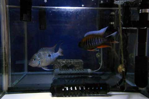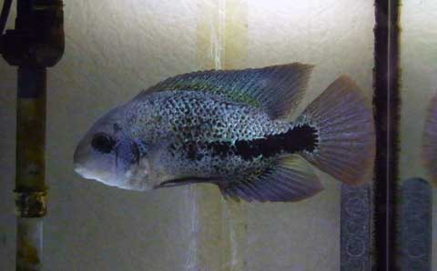ノーザンは成長早くて、全長40cmに届かんと云う勢いです。困った事と云えば、このノーザン、気が荒くて他の魚にチョッカイ出しまくり・・・。一番被害受けてるのはガーパイクで、尾鰭と背鰭が簾状態なんですよ。。。