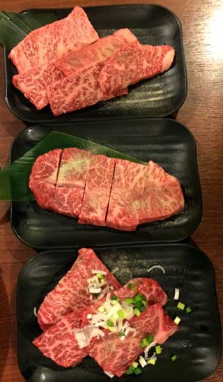一番脂っこくて所謂焼き肉なのはカルビです。右の3品は良い感じでサシが入ってますが比較的あっさりとしていて食べやすいんです。イチボがこの年になると一押しな感じ(笑)