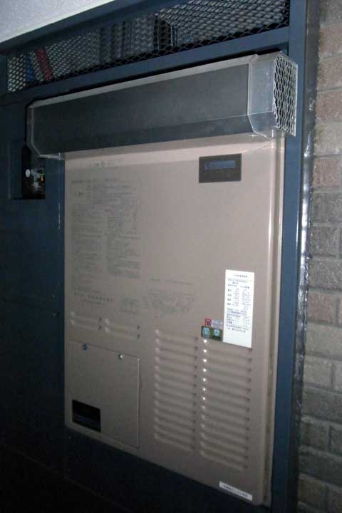 なんと、新給湯機が傾いてるんですね(下側が手前に出っ張ってるのね)。