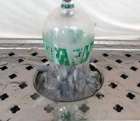逆さにグラスをセットして上から押すと、中央部分から勢いよく水が噴射されます。