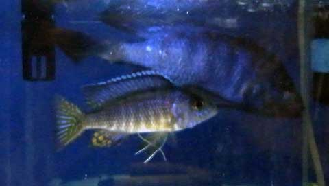顔(頭)と背びれが青くて、胴体と尾鰭は黄色主体で綺麗な色合いなのです。