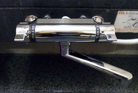 お値段を若干甘く見ていたようで、サーモ式はどれもこれも壱諭吉越えでした。もう少し安いのかなぁと思っていたんですが・・・(笑)。オマケに、交換工賃が6000円とか書いてあります!絶対自分で交換してやろうと思った瞬間でした(爆)。で、肝心の混合栓ですが、普段だったら奥様がブツブツとモノ申すお値段でしたが、安心して風呂に入っていられないとなれば話は別のようで、一先ずは帰ってもう少し安い所が無いか調べようと言うことでその場を退散しました。