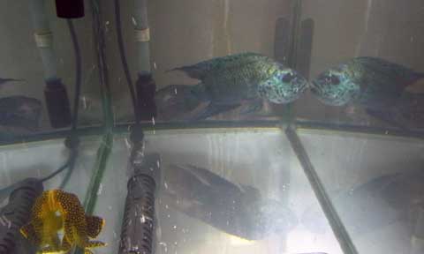 ブルーとテキサスは60cm水槽では狭いのでは??とお思いの方も居るかと思いますが、テキサスは残念ながら余命幾許も無い状態であるため問題は無いのです。。。