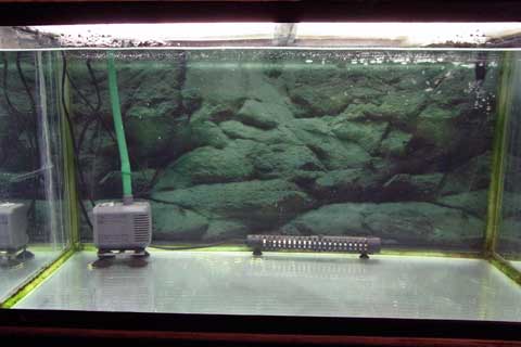 左側奥の黒いのがカバーです。この中にヒーターとポンプを収めています。