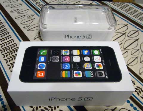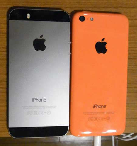 ↓ブツはこれです。私は5S(左)を、奥様は5C(右)をチョイス。容量は32G。