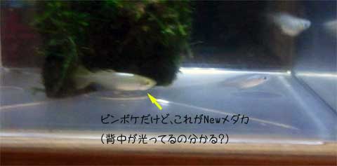 つーことで今回買って来たのは、琥珀色の光るメダカということになります。でも1匹しか買いませんでしたからね・・・。何故って、1匹で315円もするのに、血が濃いためか奇形気味だし・・・ということで今回はお試しです。