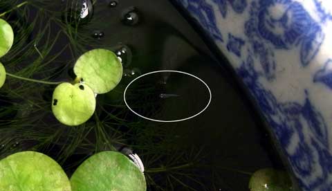 水草が繁殖しまくっていたんで間引こうかとマジマジと覗いたら、可愛いのが1匹 賢明に泳いでいるではありませんか! 巻き貝も大量発生していたんで、ソコソコ水草を取り除きたかったんですが、他にも赤ちゃんがいるかも知れないし、これから更に増えるかもしれないので水草の除去は諦めました。