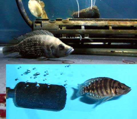 ↓判りますか?エアーストーンは同じモノなので、それで比較して下さい。上が現在、下がウチに来た時です。