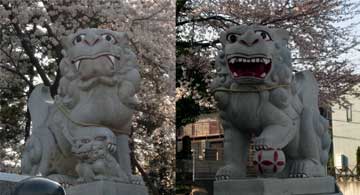 ①狛犬が近代的で且つ笑える感じで驚きました。下の入り口にあった狛犬は古い物で威厳が感じられたんですが…(笑)