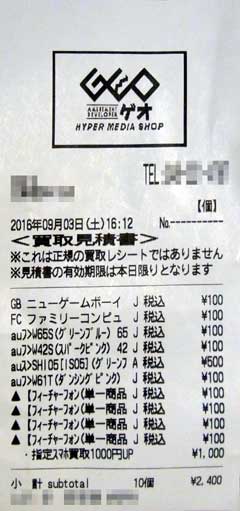 それはさておき、最近、GEOで古い携帯買い取ってるじゃないですか。“あーうー”に持って行っても一銭にもなりませんので売りに行く事にしたんです。一応、中身は消した方が良いかなぁということで、電源を入れようとしたんですが・・・左の2つは電源入って弄れました。が、他のは電源すら入らず何も出来ませんしたので、そのまま持って行きました。あ、その他にファミコンとゲームボーイ(白黒)本体も持って行きましたよ。